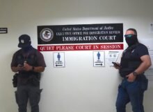 Source: Anadolu / Getty The Immigration and Customs Enforcement officer seen shoving a woman into a wall before pushing her to the ground during a chaotic scene inside